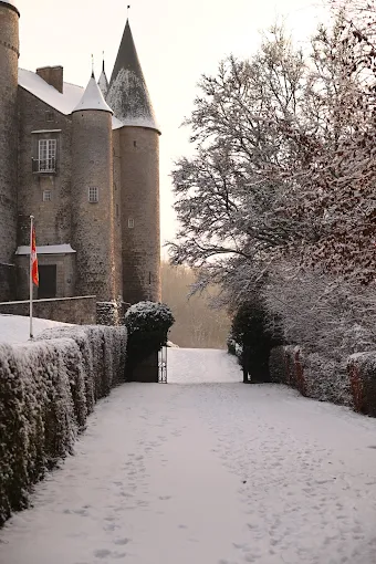 Perché sur un éperon rocheux à Celles, à quelques kilomètres de Dinant, le Château de Vêves émerveille petits et grands avec sa silhouette de conte de fées. Reconnu comme l'un des plus beaux châteaux médiévaux de Belgique, ce joyau du patrimoine wallon se distingue par ses cinq tours élancées et son architecture remarquablement préservée qui traverse plus de mille ans d'histoire.